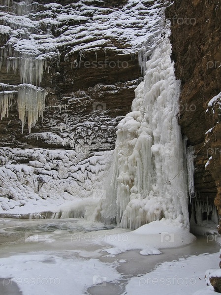 Замерзший водопад в горах Кавказа