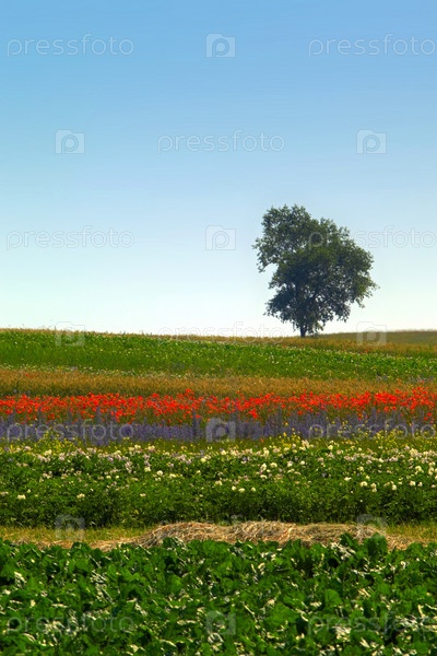 Дерево на зеленом поле