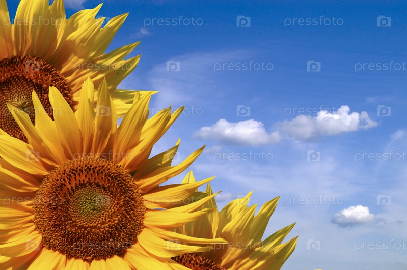 Желтые подсолнечники на фоне неба