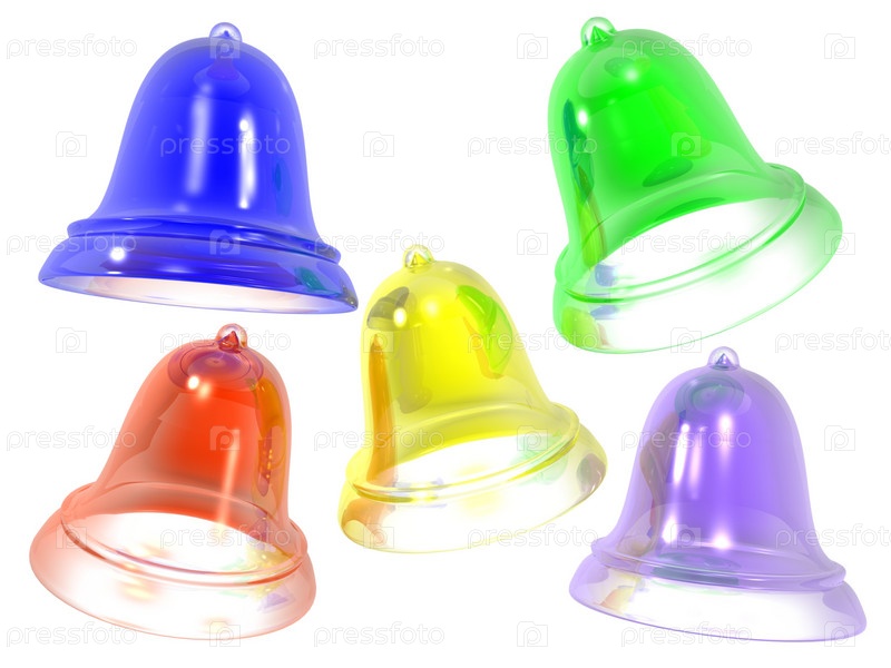 Колокольчики из цветного стекла на белом фоне