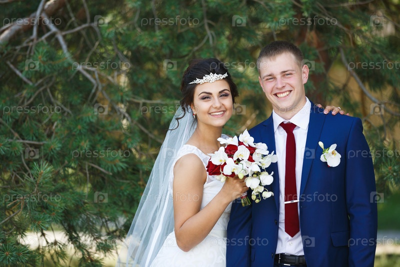 Молодожены в сосновом лесу