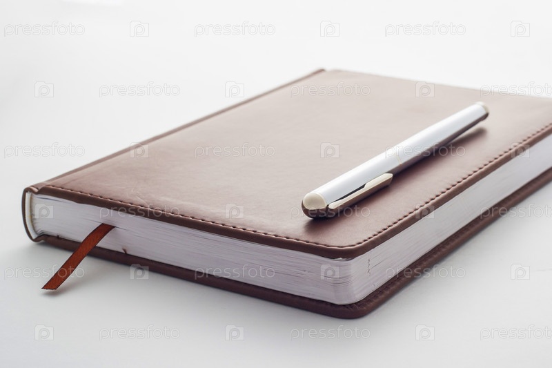 Металлическая ручка на кожаном дневнике