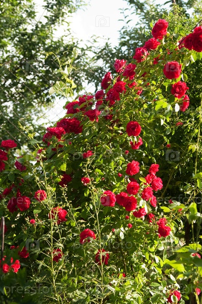 Красивый куст красных роз
