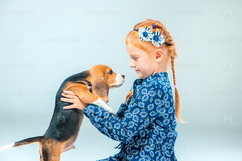 Счастливая девочка со щенком