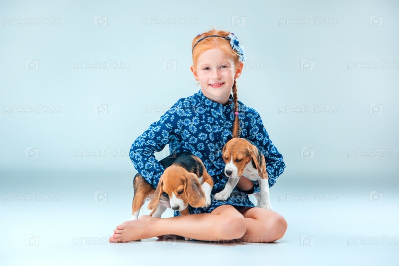 Счастливая девочка и щенок Бигля