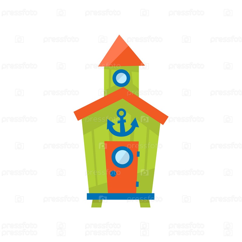 Зеленая пляжная кабина с якорем