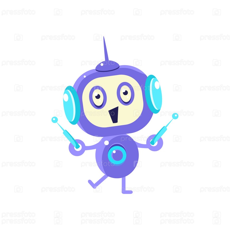 Счастливый маленький робот с двумя антеннами
