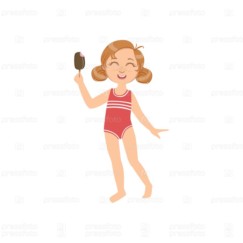 Девушка в купальнике ест мороженое