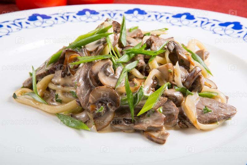 Лапша с говядининой и луком-пореем