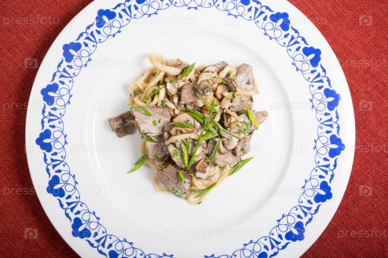 Лапша с говядининой и луком-пореем