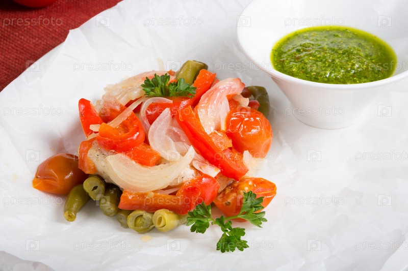 Овощи с соусом песто