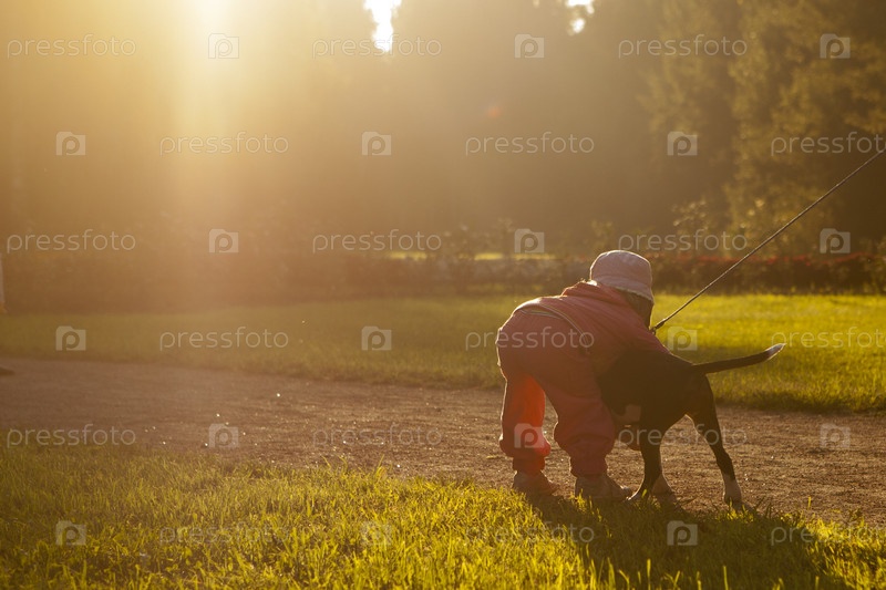 Девочка играет с щенком