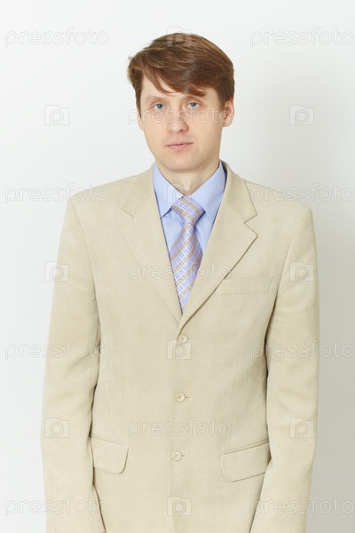 Портрет молодого человека в деловом костюме на светлом фоне