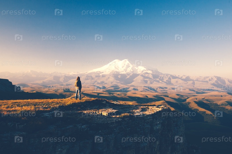 Путешественник, глядя на гору Эльбрус