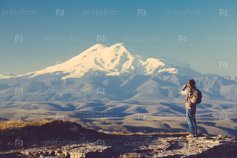 Путешественник, глядя на гору Эльбрус