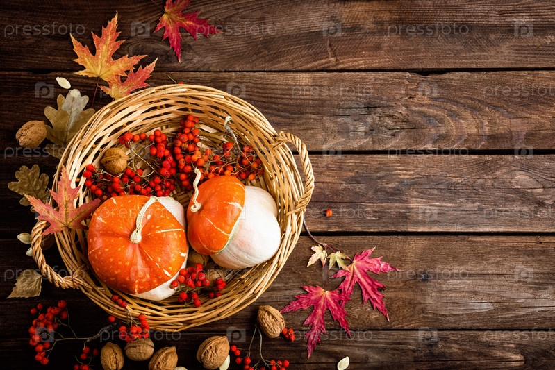 Осенний фон с листьями и тыквами