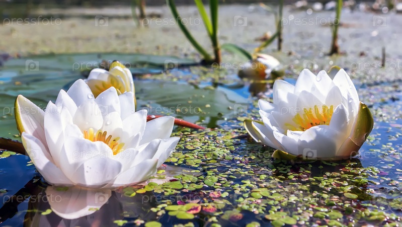 Белые лилии в пруду