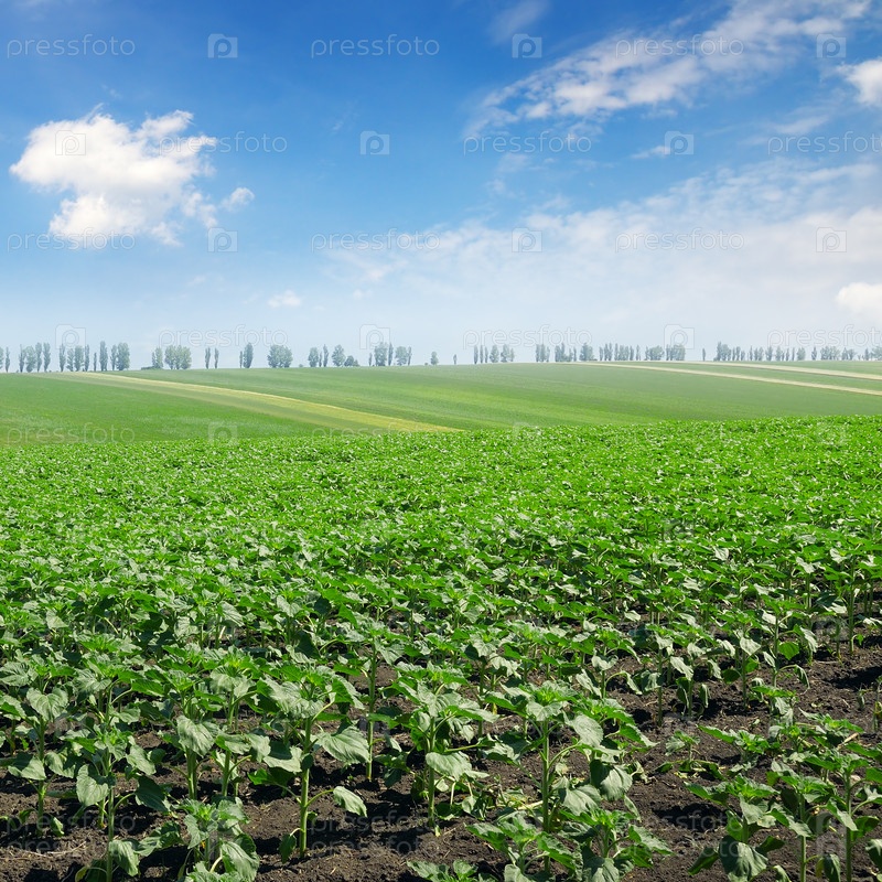 Поле молодых подсолнухов