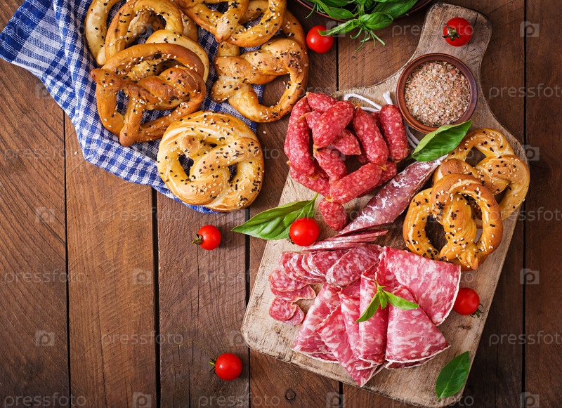 Крендели и мясная нарезка