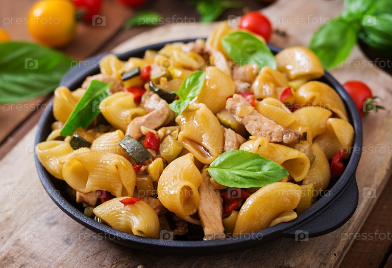 Паста с мясом и овощами