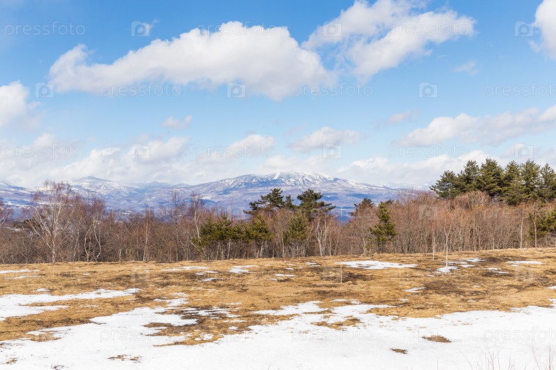 Зимний пейзаж с голубым небом