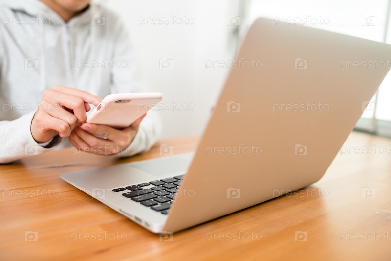 Используя ноутбук и мобильный телефон