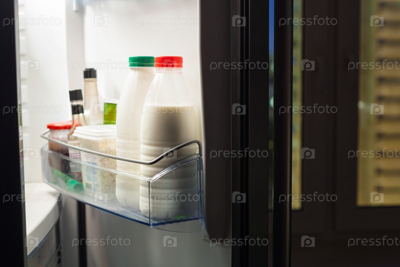 Открытый холодильник с молоком