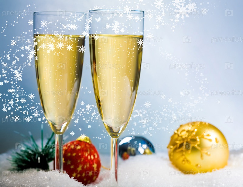 Изображение двух флейт с шампанским в снегу