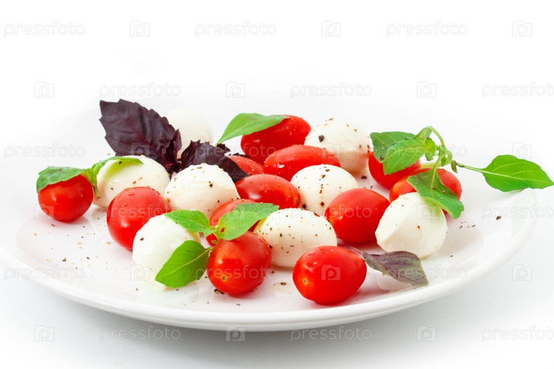 Помидоры с сыром моцарелла и базиликом