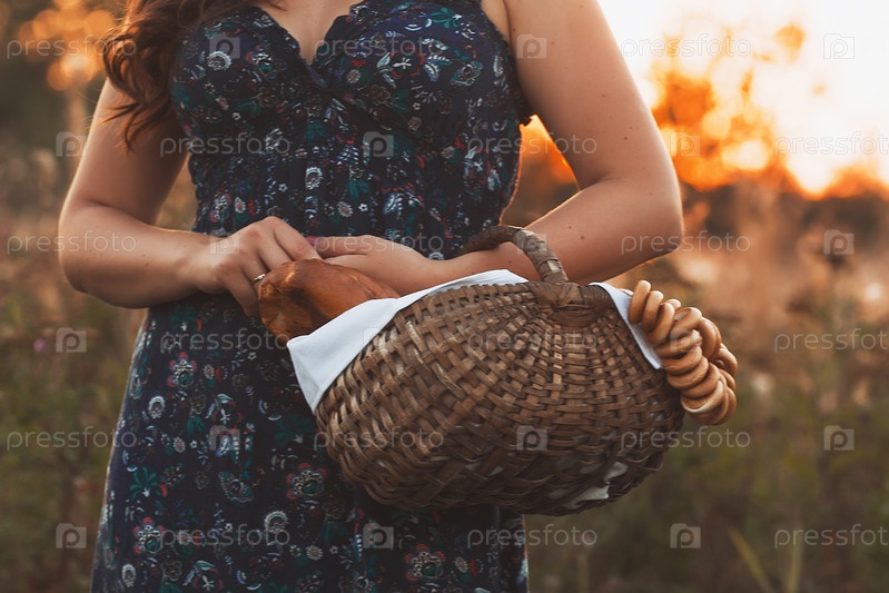 Молодая женщина с корзиной свежего хлеба