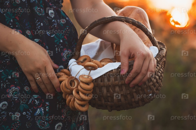 Молодая женщина с корзиной свежего хлеба