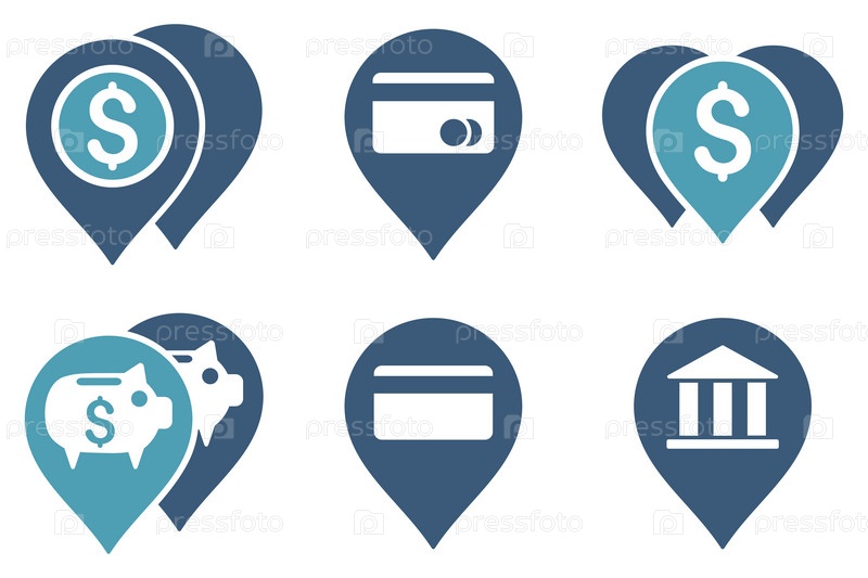 Банк маркеры карты плоские векторные иконки