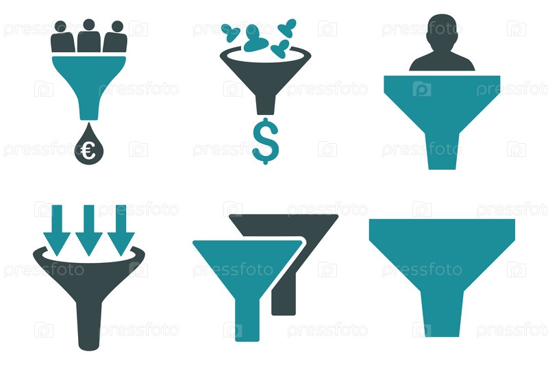 Воронка продаж плоские векторные иконки