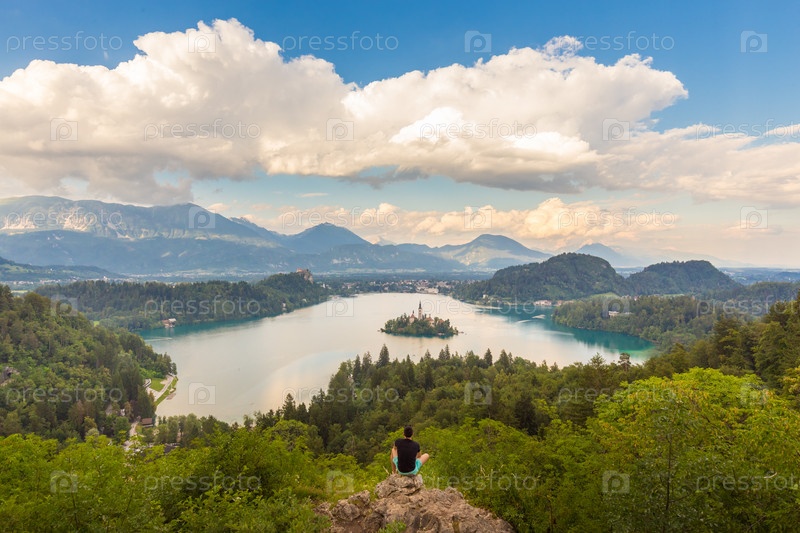 Наслаждаясь панорамным видом на озеро Блед, Словения