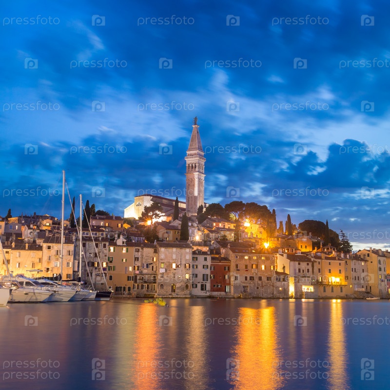 Прибрежный город Ровинь, Истрия, Хорватия в закат