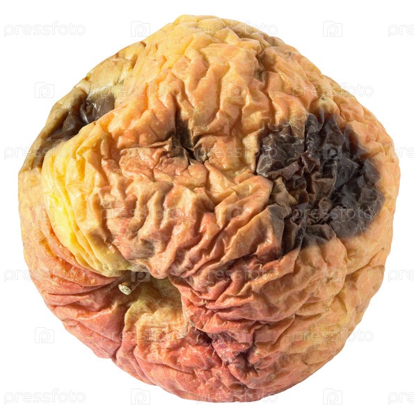 Увядающее полугнилое яблоко на белом фоне изолировано