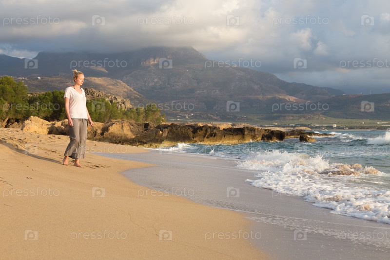 Прогулка на песчаном пляже в золотой час