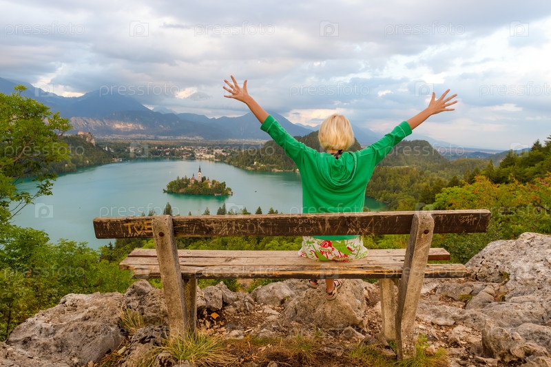 Ннаслаждаясь панорамным видом на озеро Блед, Словения