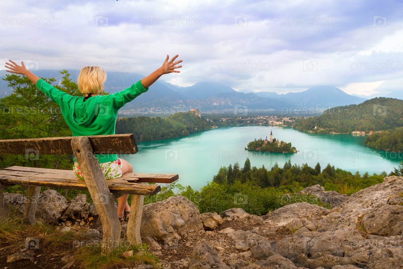 Наслаждаясь панорамным видом на озеро Блед, Словения
