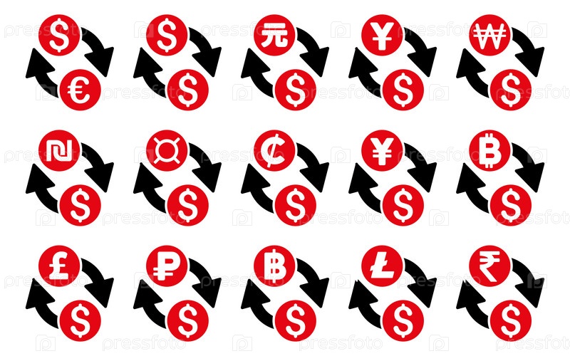 Валютный обмен плоские векторные иконки