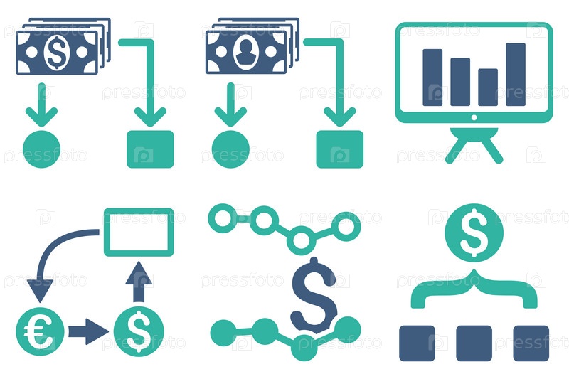 Денежный поток плоские векторные иконки