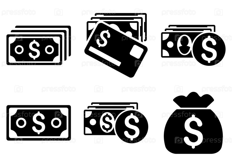 Наличные деньги плоские векторные иконки