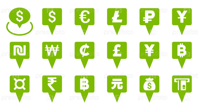 Валюты указатель карты плоские векторные иконки