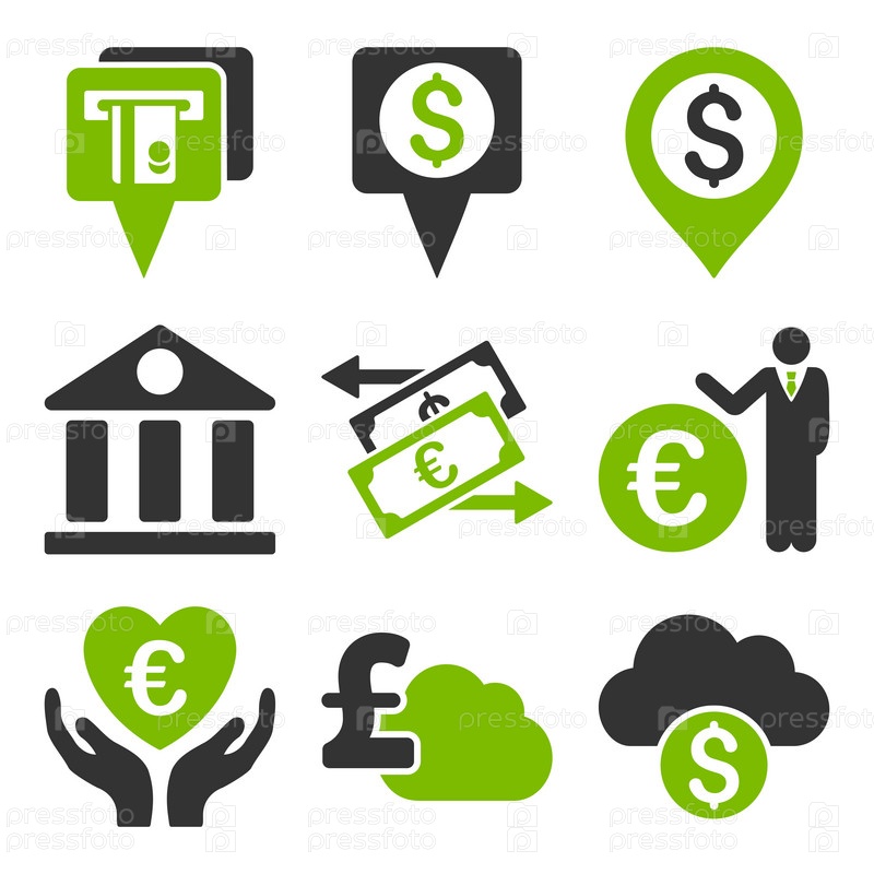 Банк плоские векторные иконки