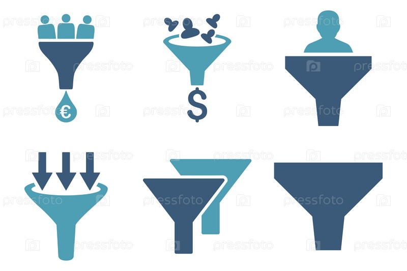 Воронка продаж плоские векторные иконки