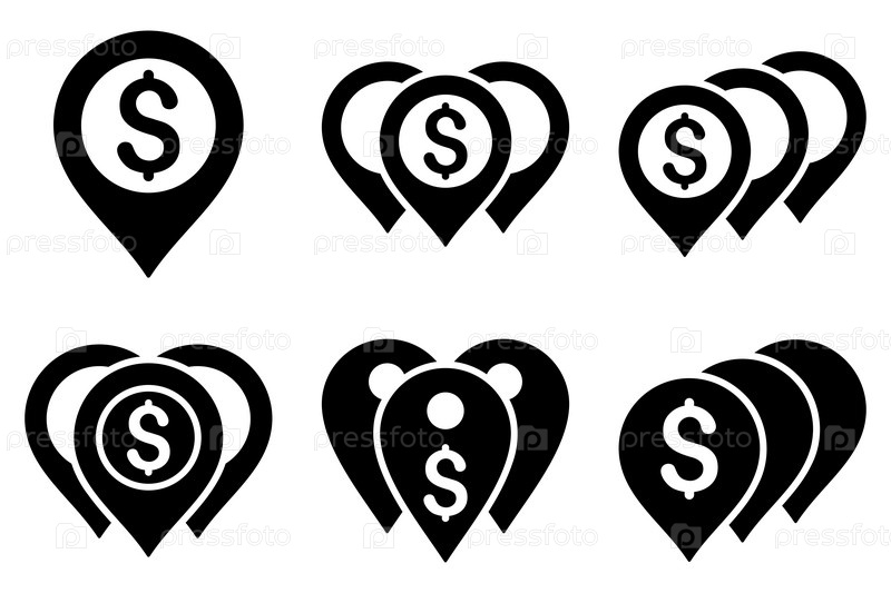 Деньги местоположение векторные иконки