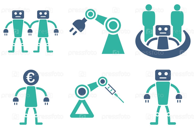 Робототехника плоские векторные иконки