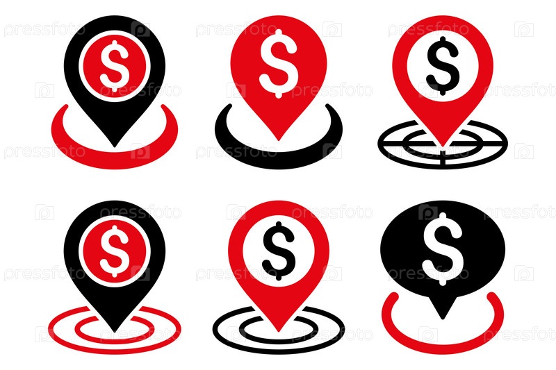Деньги местоположение векторные иконки