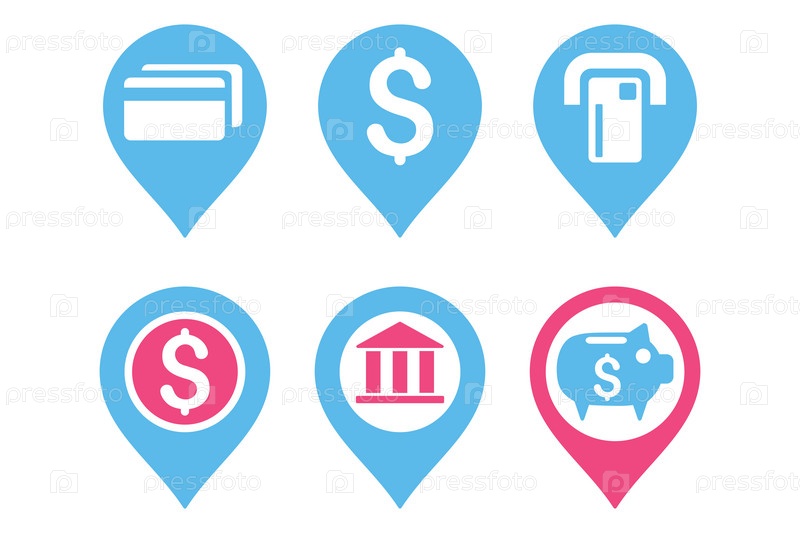 Банкмат местоположение плоские векторные иконки