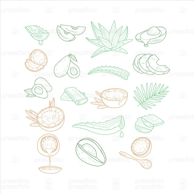 Авокадо, алоэ и кокос с разных ракурсов